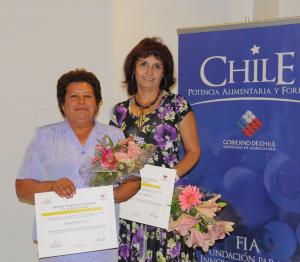 Laura Almendares, decana de la Facultad Tecnológica de la Universidad de Santiago, y Susana Tobar, agricultora de la zona de San Roberto en la Región de O’Higgins, fueron galardonadas con el Premio a la Mujer Innovadora 2010, que entrega la Fundación para la Innovación Agraria, FIA.